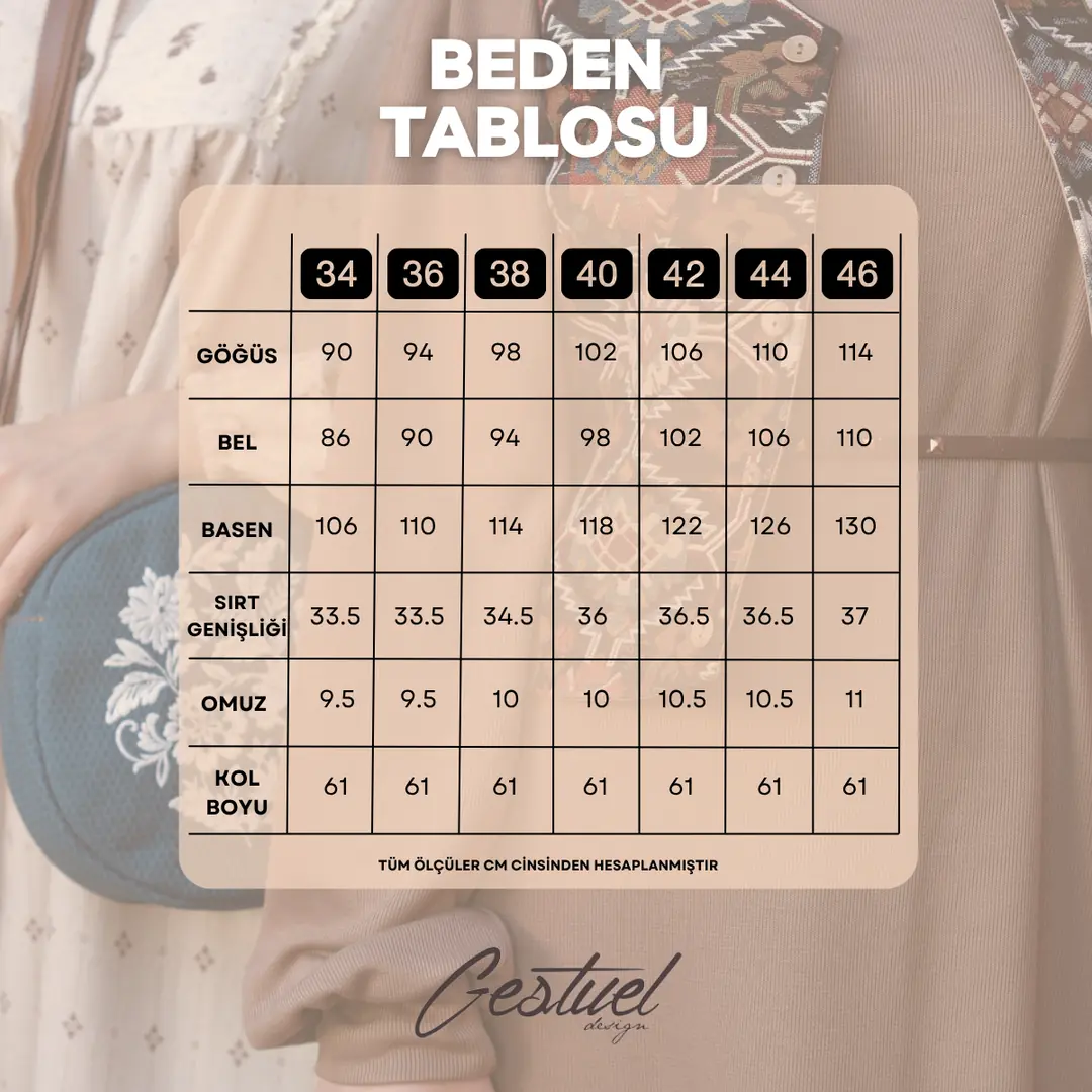 – Sipariş formunda beden ve üretim boyu bilgilerinizi eksiksiz giriniz.