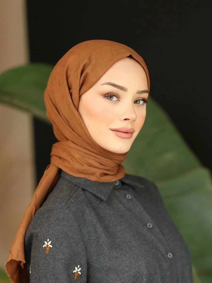 Bambu Crash Şal Taba, taba renginin sıcak ve doğal tonlarını bambu ve polyesterin hafif yapısıyla birleştiren şık bir aksesuardır. Ürün, özel dokusu sayesinde gün boyu konfor ve ferahlık sağlar; özellikle yaz ve bahar aylarında stilinize zarif bir dokunuş ekler. Taba rengi, klasik ve modern kombinlere uyum sağlayacak şekilde tasarlanmıştır.