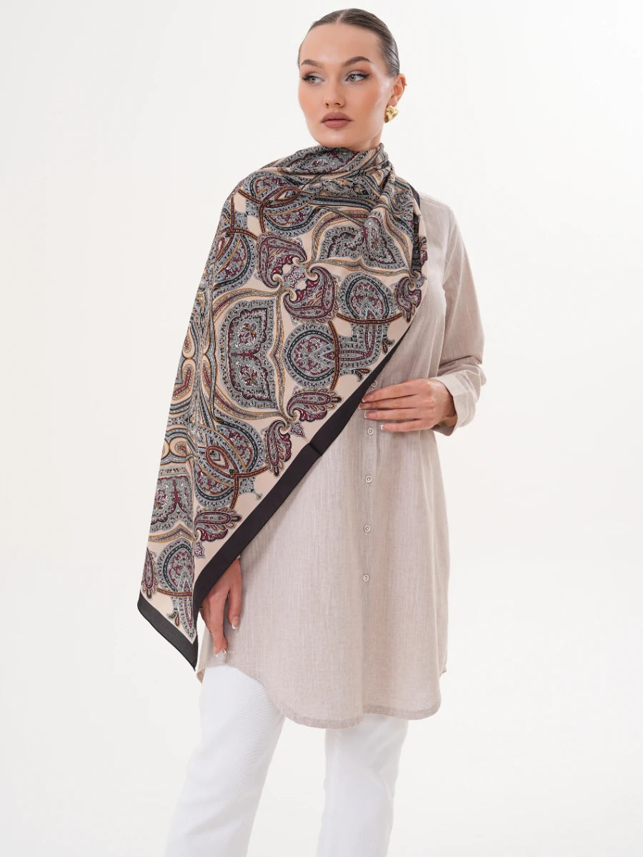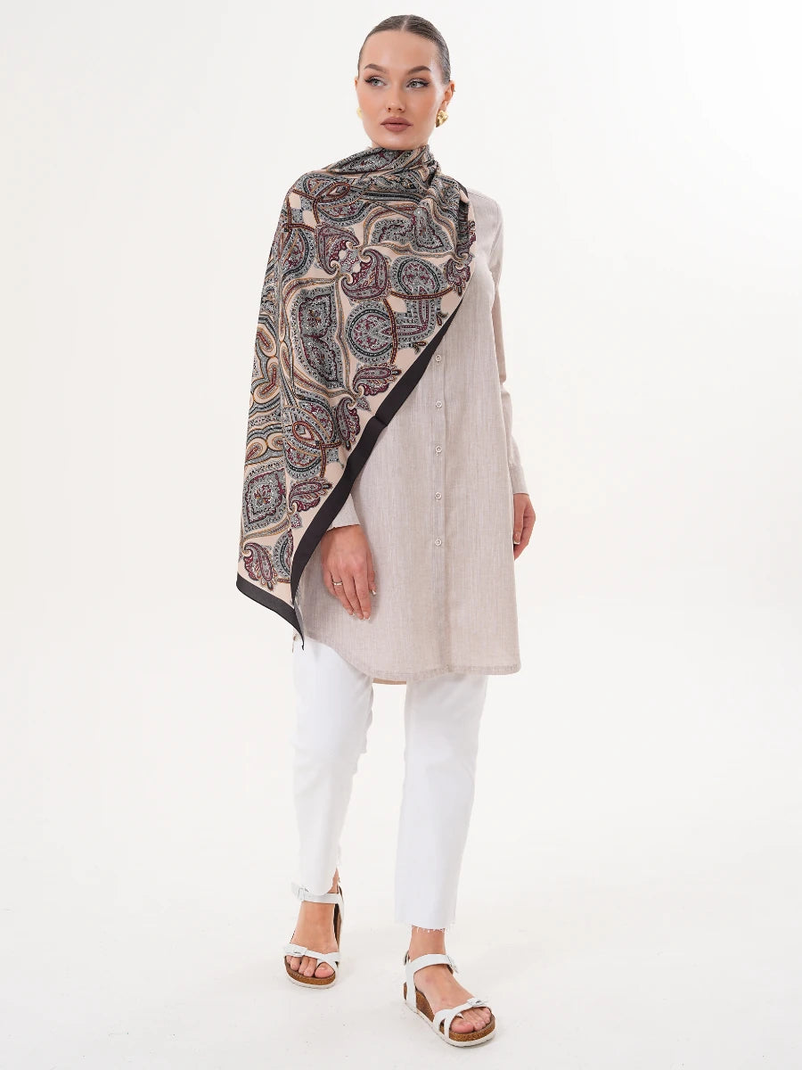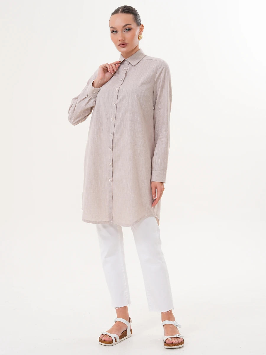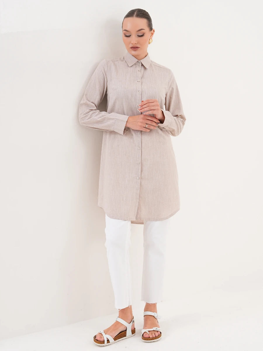 Basic Pamuklu Gömlek Bej + Şal Hediyeli
