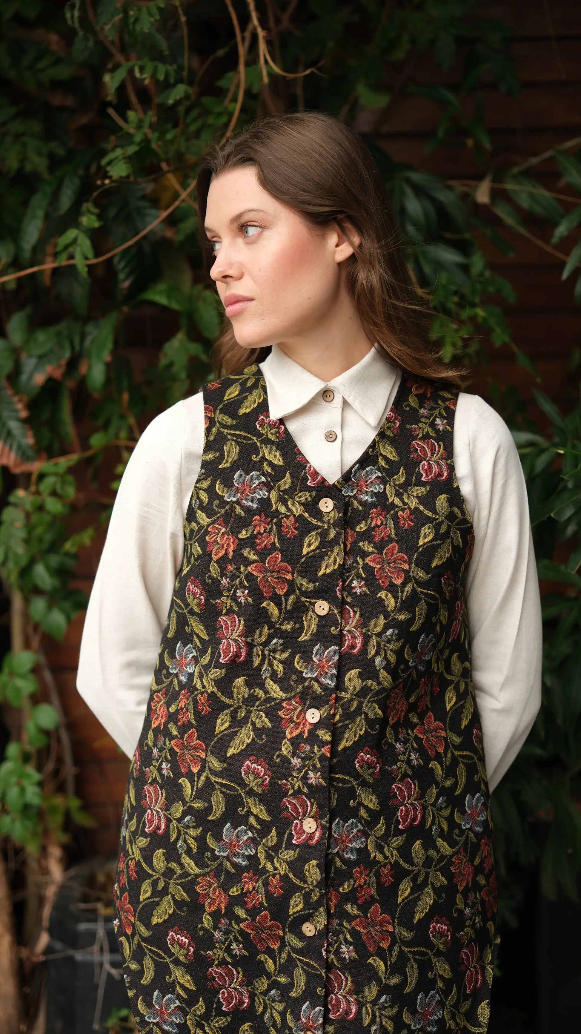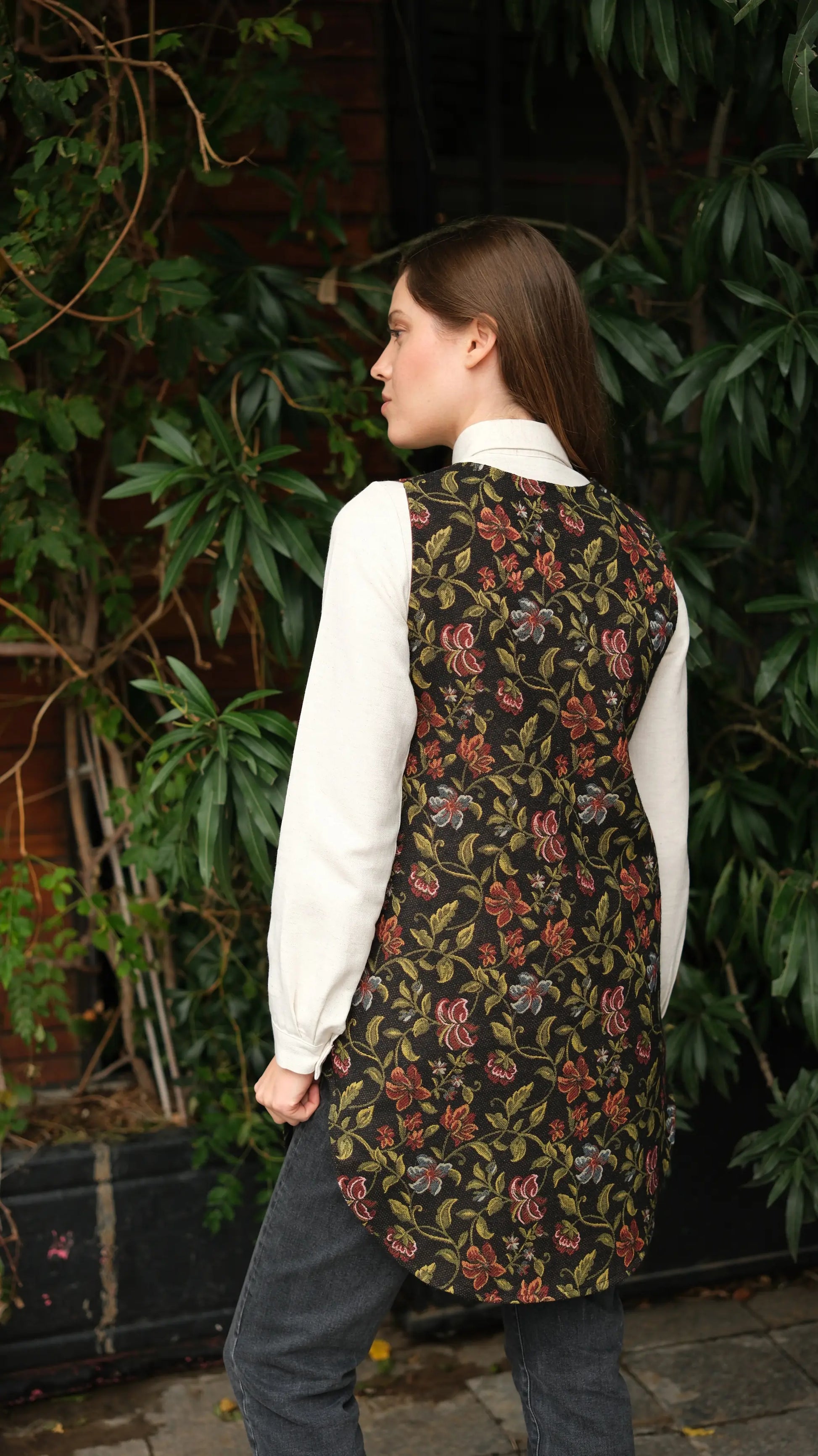 Çiçek Desenli Goblen Uzun Yelek