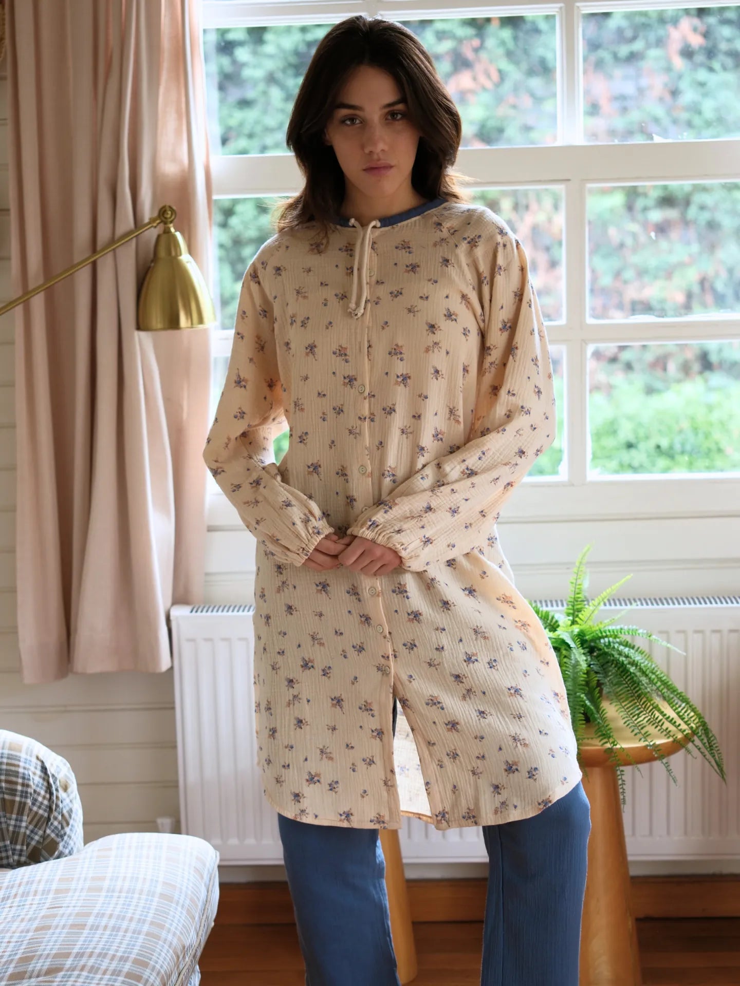 Çıtır Çiçek Desenli Pamuklu Müslin Tunik Mavi, ferahlatıcı mavi tonları ve canlı çiçek desenleri ile öne çıkan bir tuniktir. %100 pamuklu müslin kumaştan üretilen bu ürün, hem şıklığı hem de rahatlığı bir araya getirir. Modern dokunuşları ile günlük kombinlerinize özgün bir stil katar.