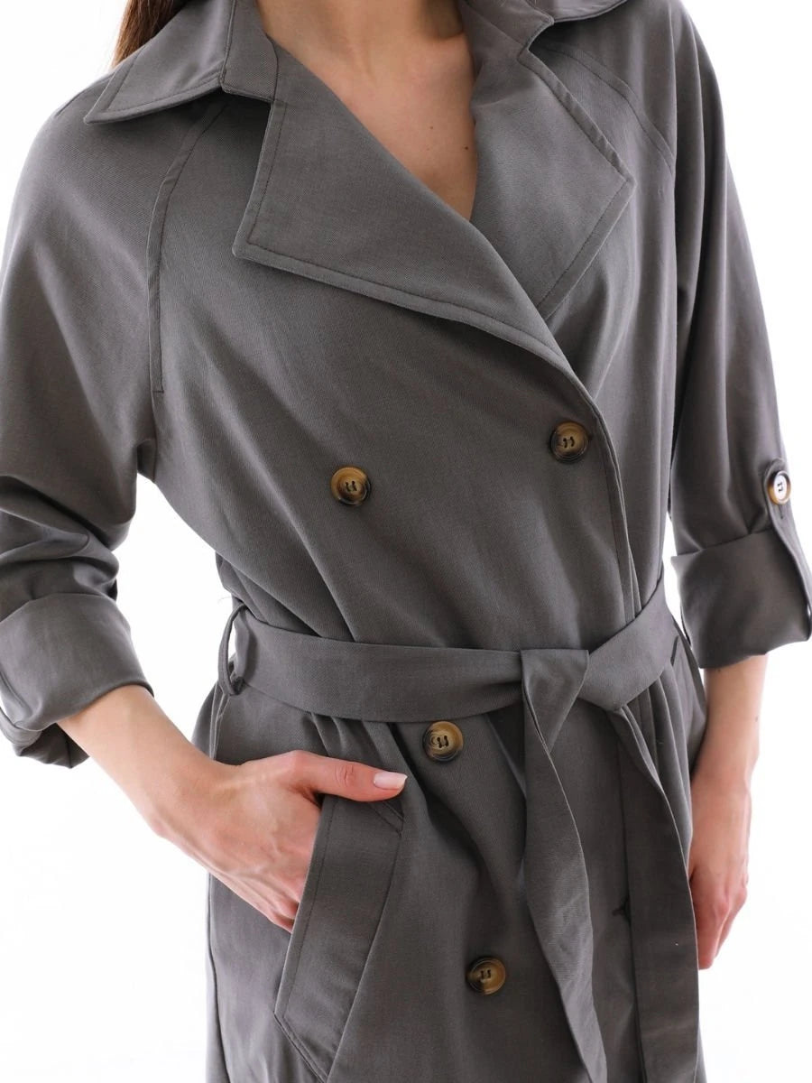 Cool Trençkot Gri, pamuklu viskon tensel kumaşın modern ve hafif yapısını gri rengin sofistike etkisiyle sunan şık bir dış giyim ürünüdür. Astarsız üretilen bu trençkot, sade ve zarif tasarımı ile günlük kombinlerinize modern bir dokunuş katar. Ürün, hem iş hem de sosyal ortamlarda rahatlıkla tercih edilebilir.