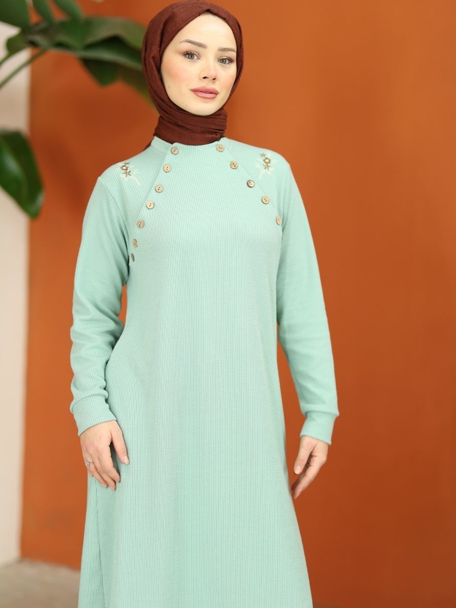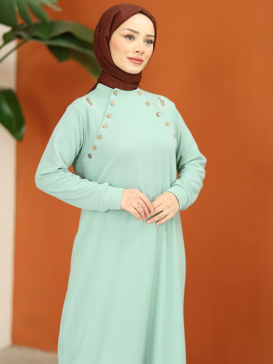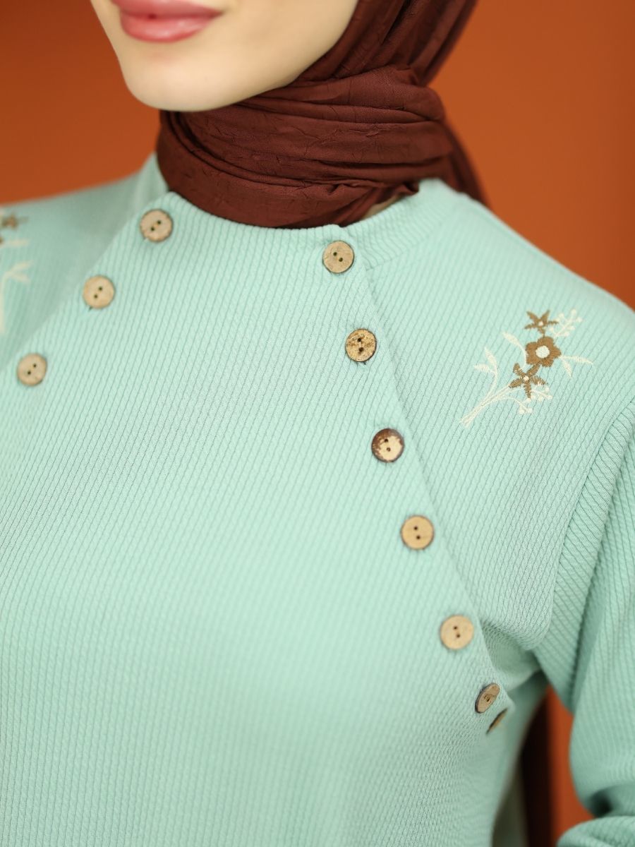 Düğmeli Triko Takım Nefti Yeşil