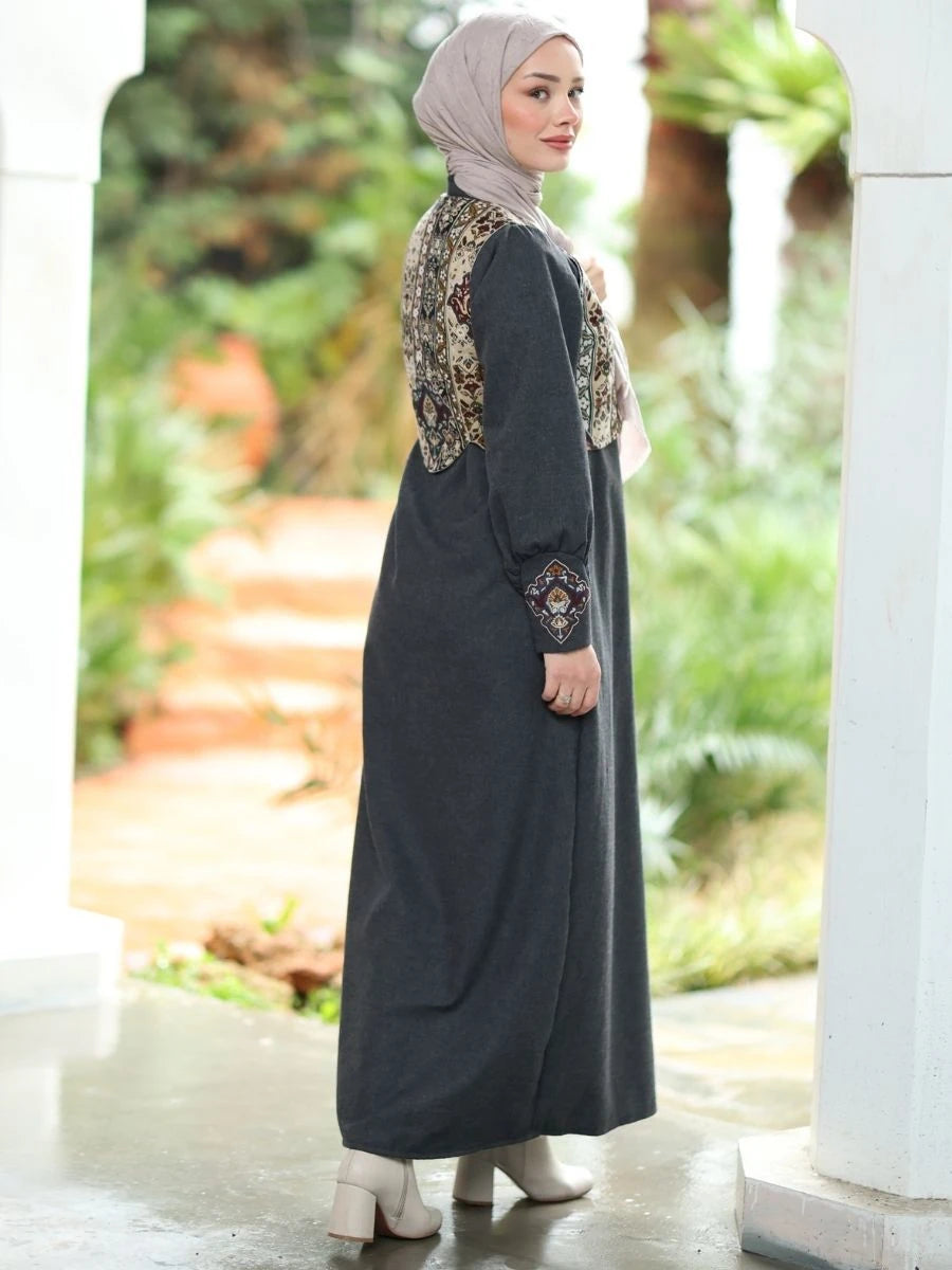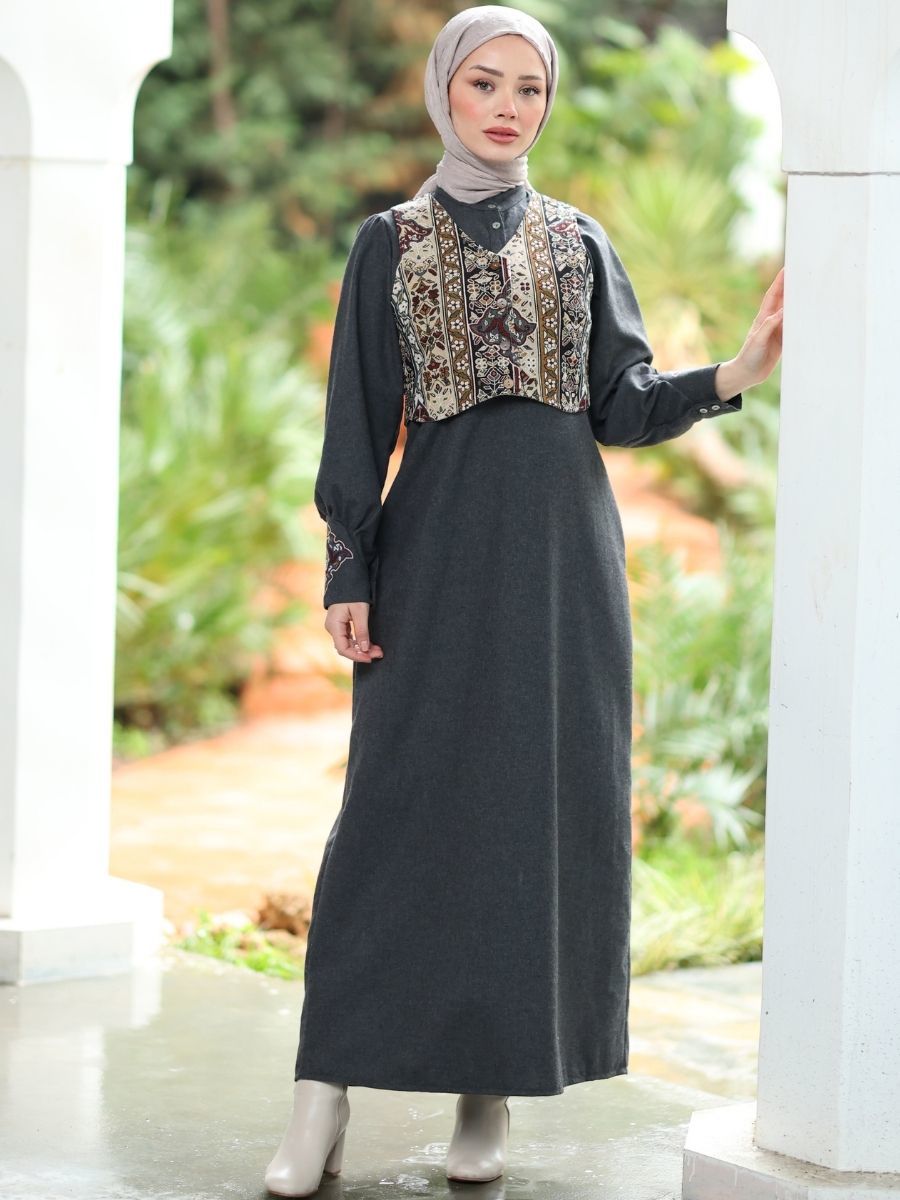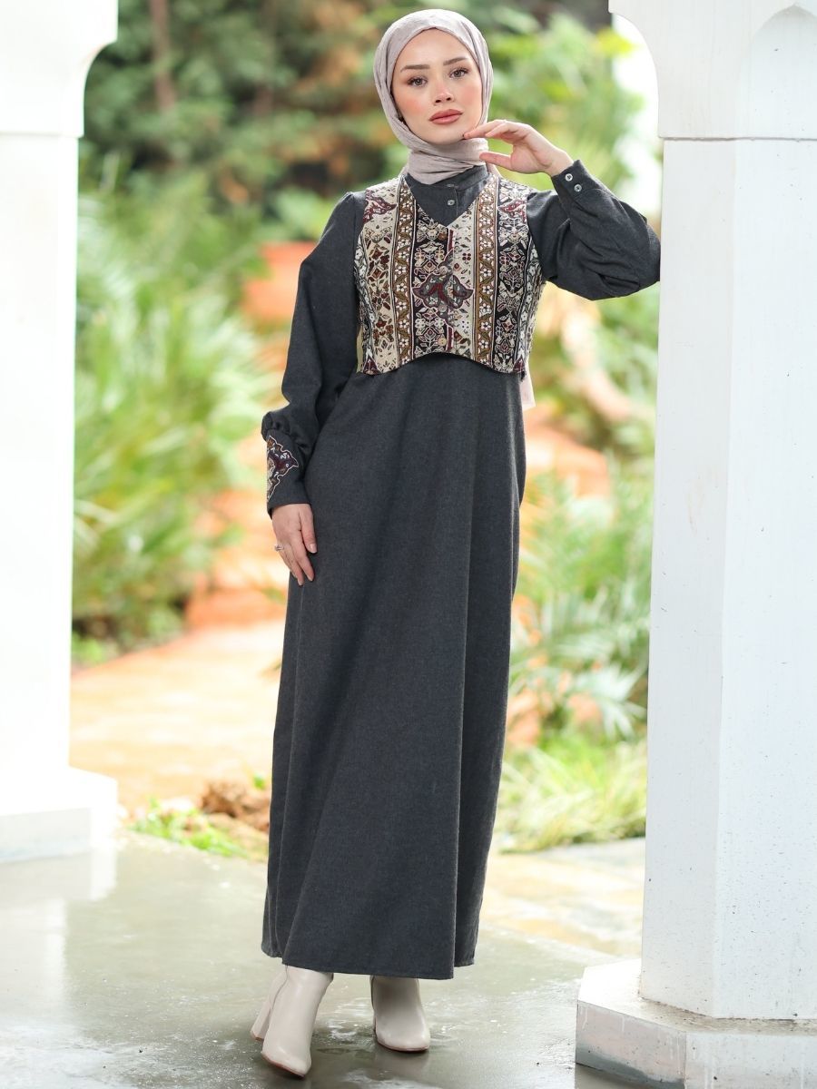 Goblen Yelekli Elbise Takım Siyah