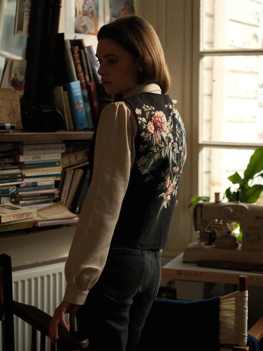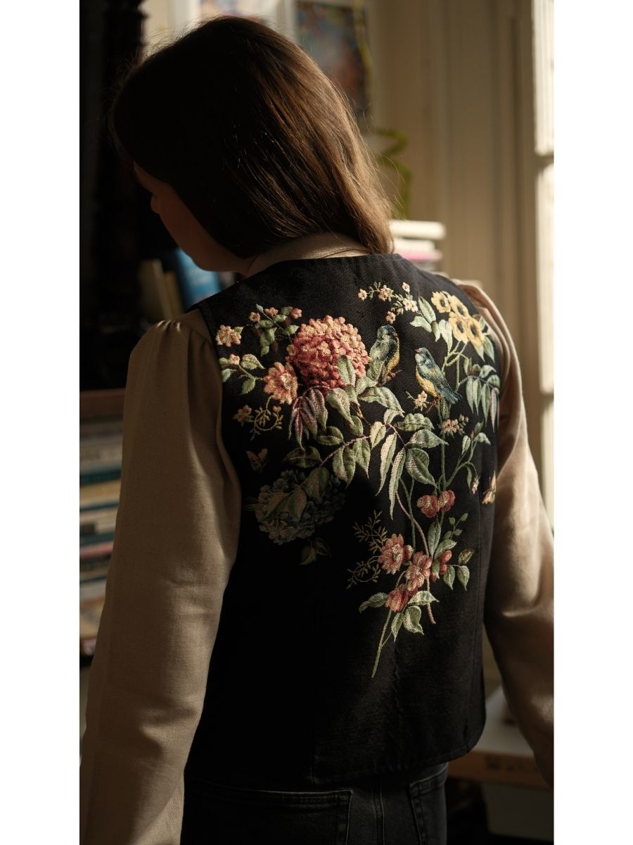 Kuş Desen Goblen Yelek, özel dokuma goblen kumaşın zarafetini modern kuş desenleriyle buluşturan şık bir parçadır. Klasik kesimi ve özenle seçilmiş malzemesi sayesinde, soğuk günlerde ekstra konfor sunar. Bu yelek, stilinize modern bir dokunuş katarken, her kombinle uyum sağlayacak şekilde tasarlanmıştır.