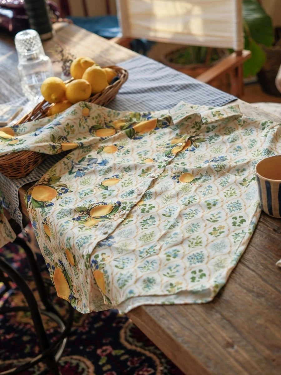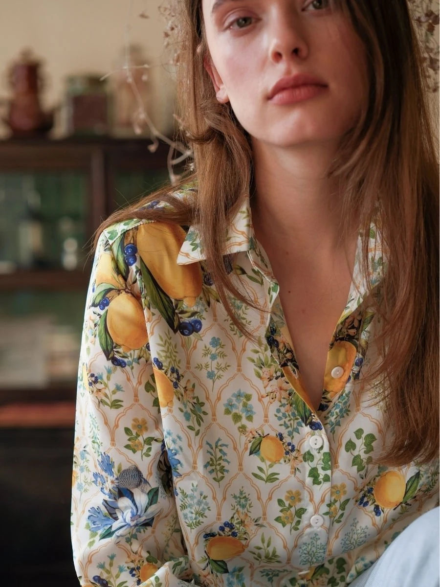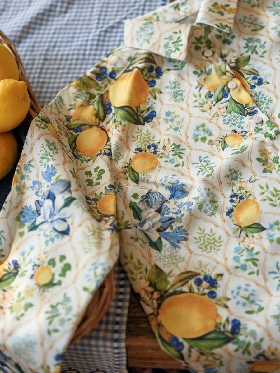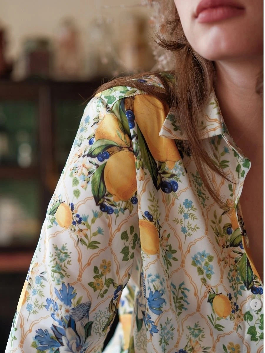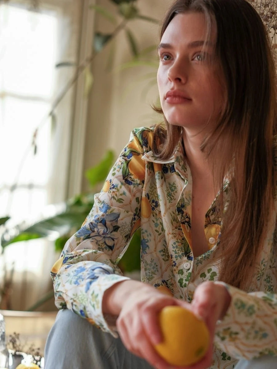 Limon Desenli Saten Gömlek