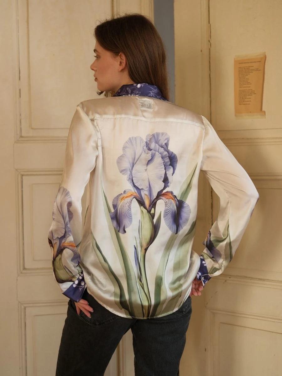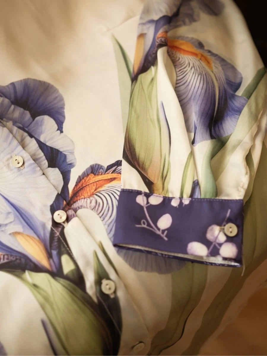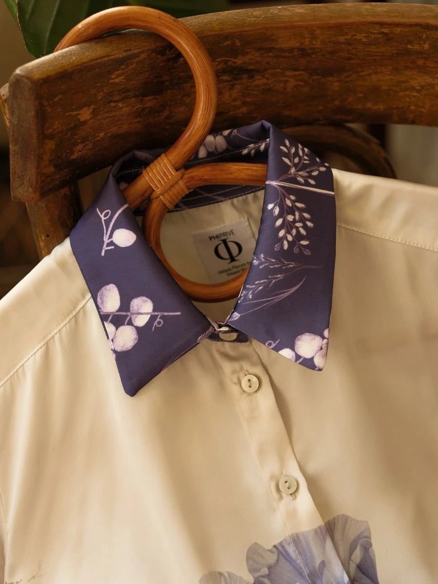 Menekşe Desen Saten Gömlek