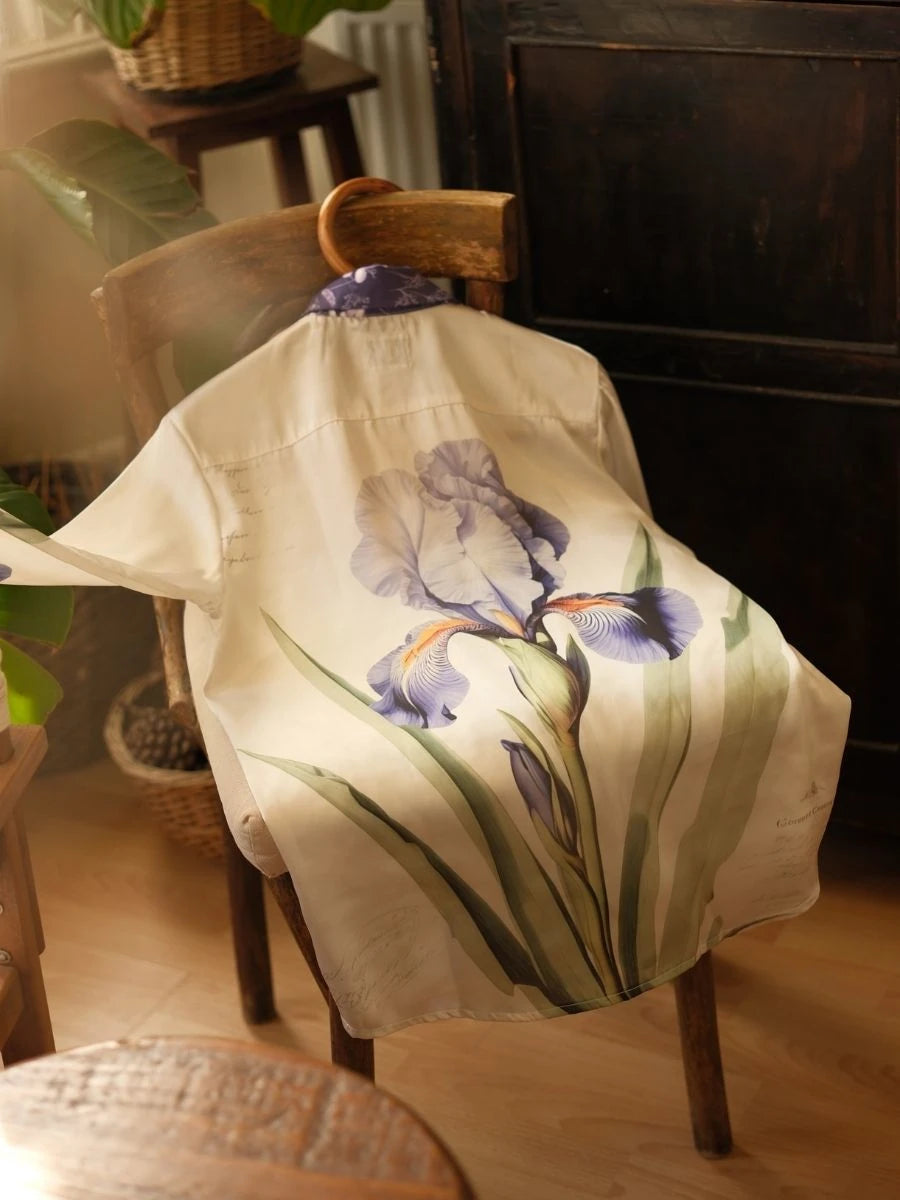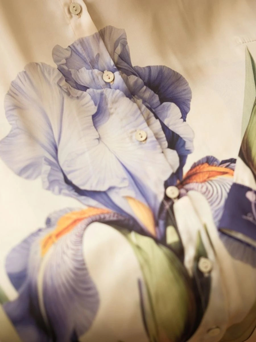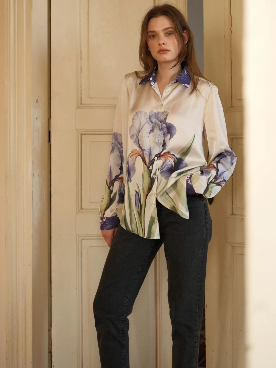 Menekşe Desen Saten Gömlek