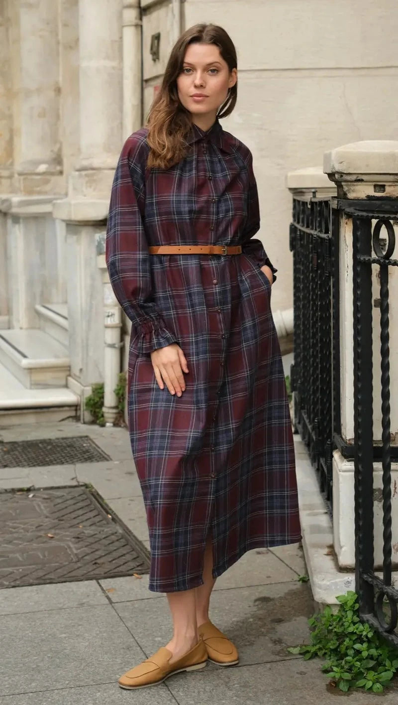 Zarif ve rahat bir şıklık sunan Mira Ekose Elbise, sonbahar ve kış kombinleriniz için ideal bir tercihtir. %100 pamuklu flanel ekose kumaşı, hem sıcak tutma özelliği hem de şık görünümü ile dikkat çekmektedir. Bordo ve lacivert tonlarının uyumu, her ortamda zarif bir stil yaratmanıza olanak tanır.