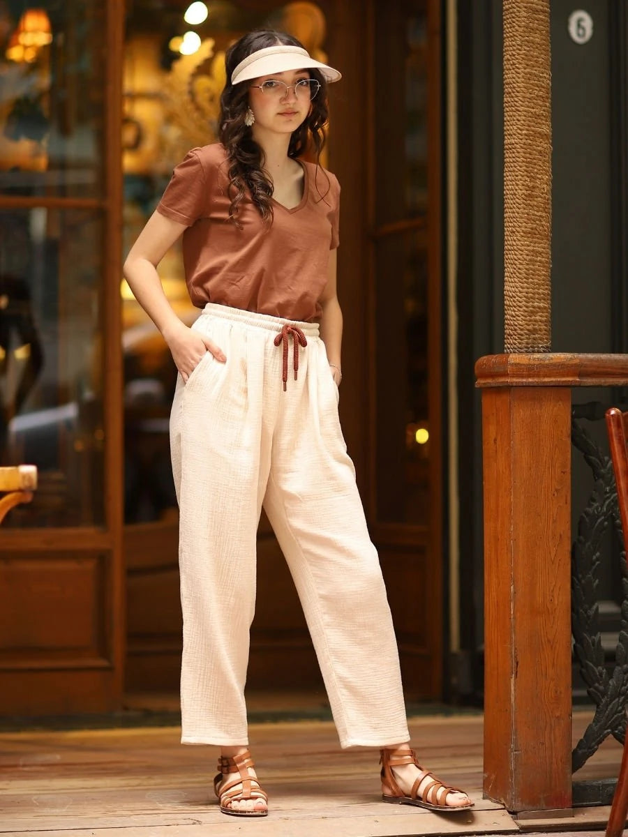 Müslin Pantolon Krem