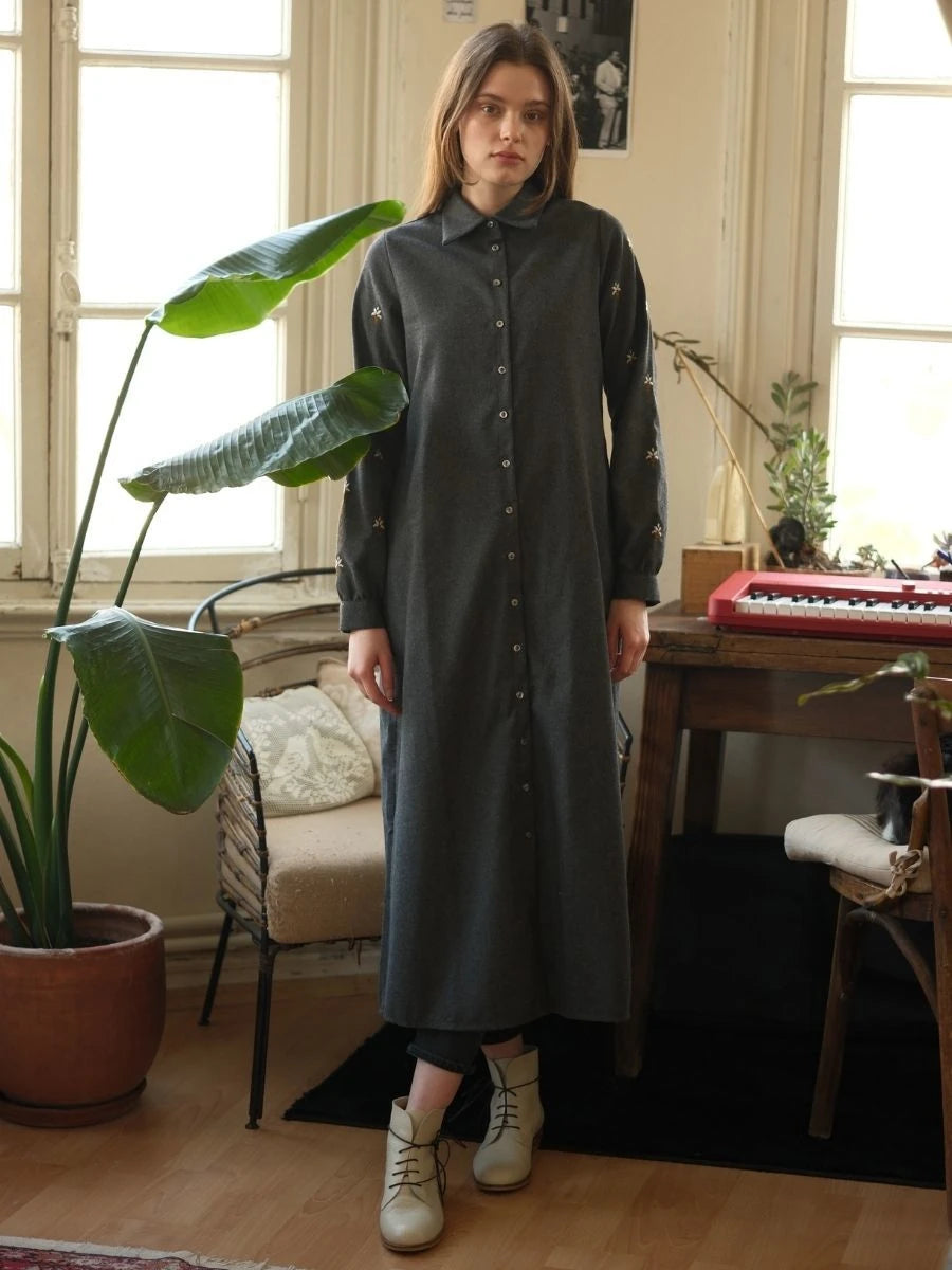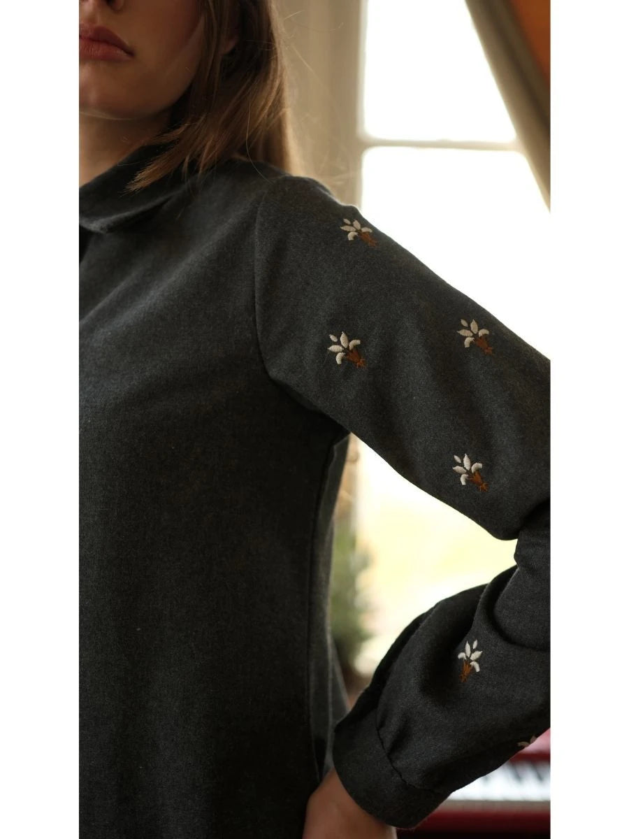 Parla Tunik Koyu Antrasit, koyu antrasit rengin sofistike etkisini pamuklu flanel kumaşın sıcaklığıyla buluşturan modern bir tuniktir. Ürün, zarif detayları ve temiz kesimiyle kış aylarında hem konfor hem de şıklık sunar. Koyu ton, minimalist ve modern kombinlere kolaylıkla uyum sağlar.