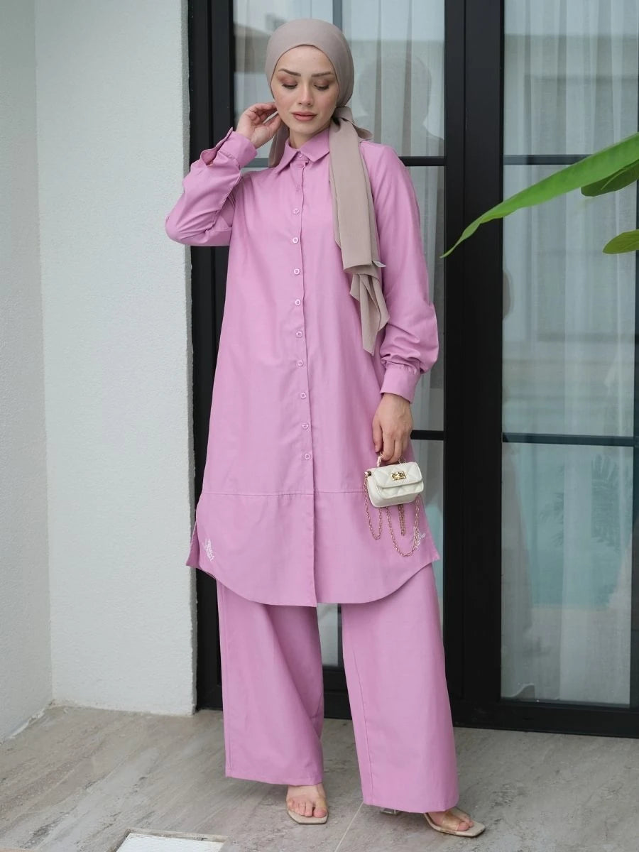 Poplin Takım Leylak, pamuklu poplin kumaşın hafif ve ferah yapısını leylak rengin zarif dokunuşu ile birleştirir. Takım, tunik ve pantolonun uyumlu kesimleriyle modern bir görünüm sunar; hem ofis hem de günlük kombinlerinizde şıklığınızı tamamlar. Renk uyumu ve kaliteli kesimi, ürünün öne çıkan özelliklerindendir.
