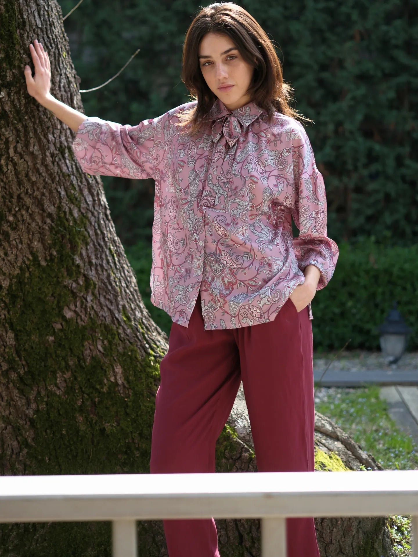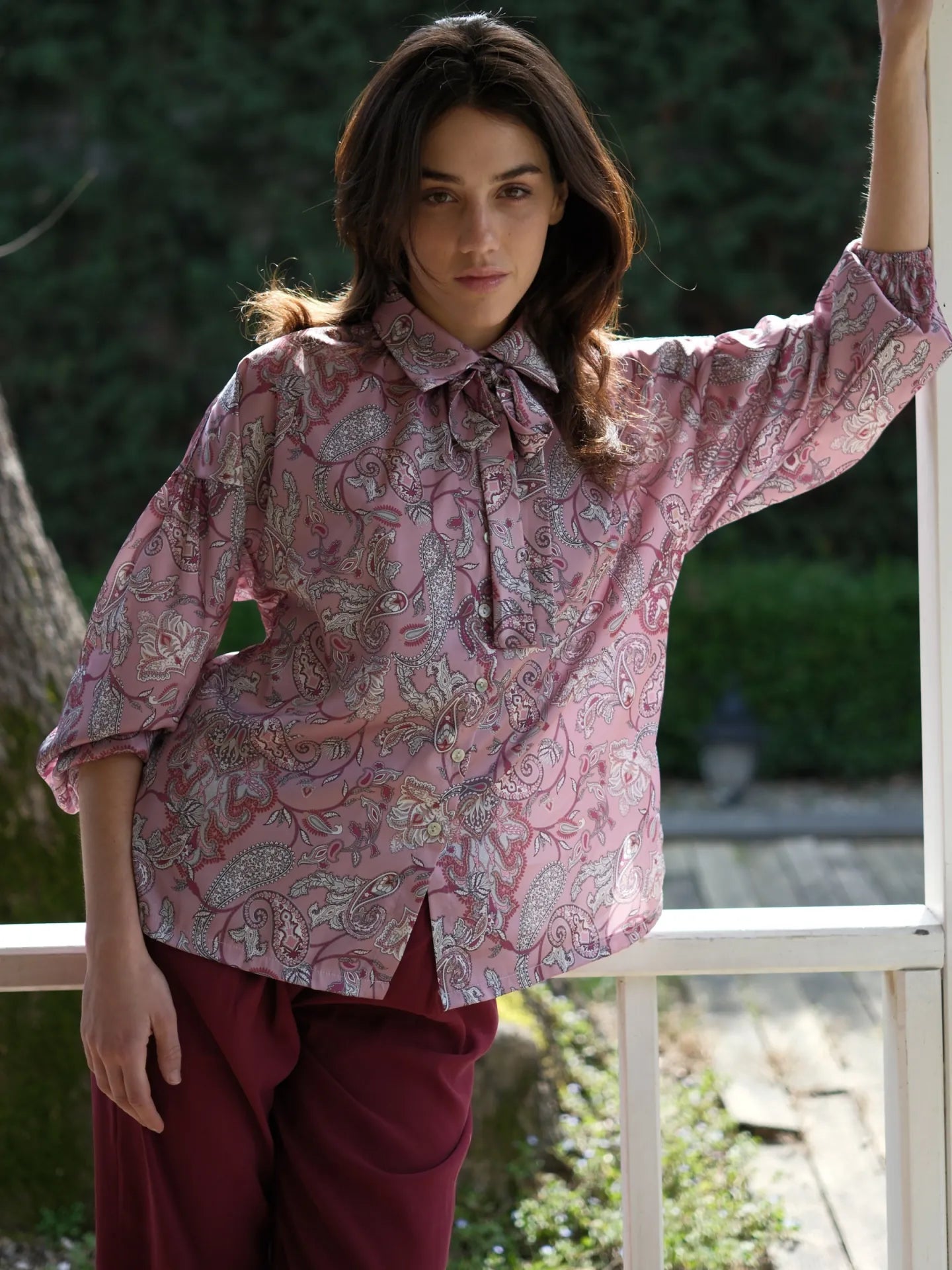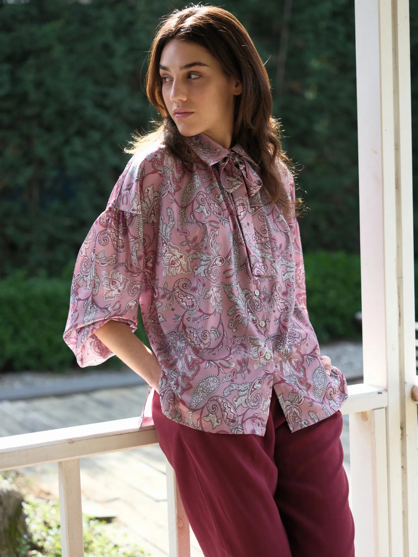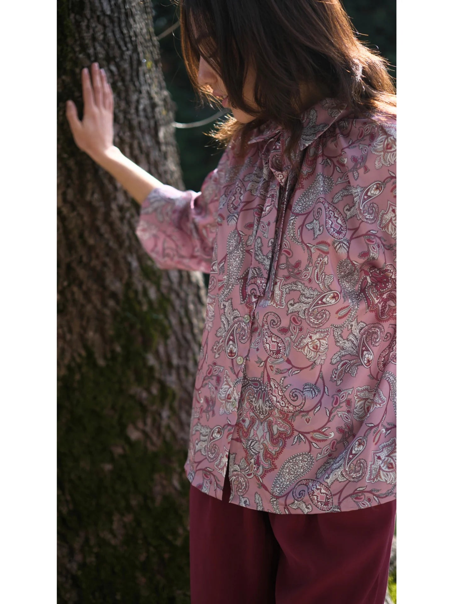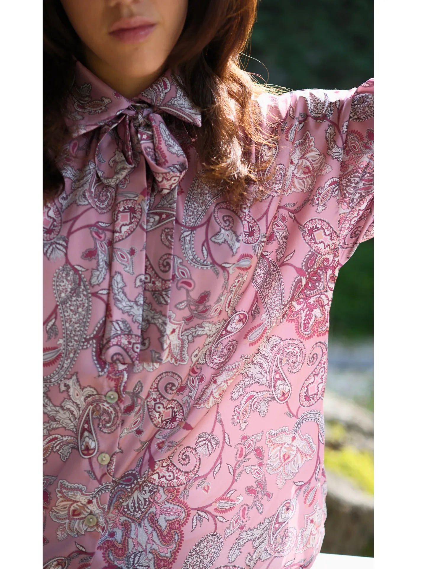 Şal Desen Saten Bluz Gül Kurusu