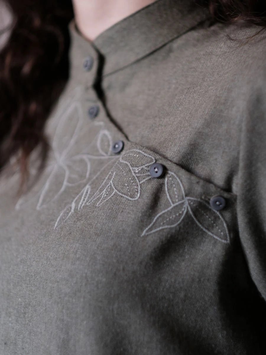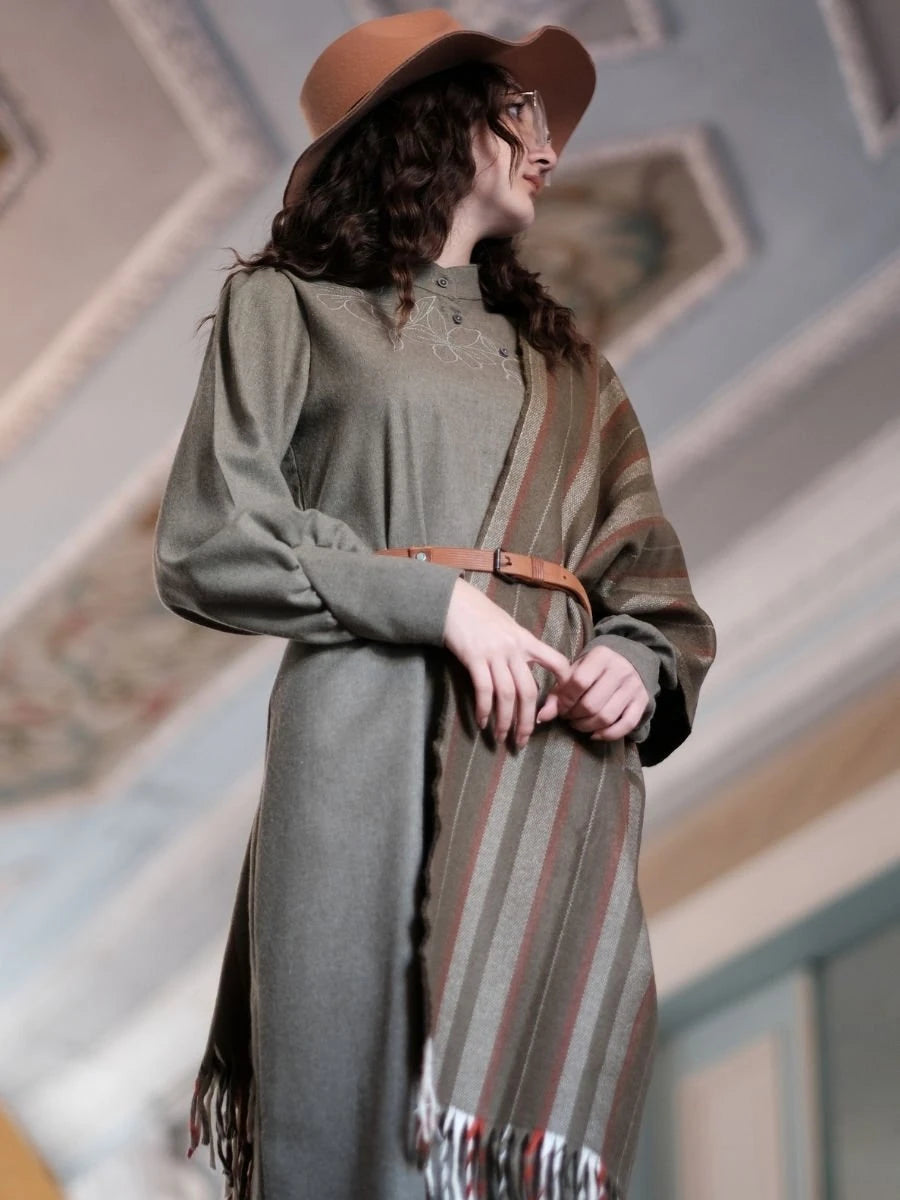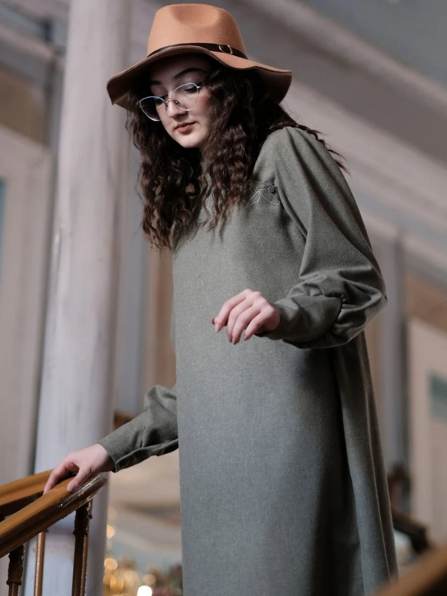 Şehrazat Elbise Haki, pamuklu flanel kumaşın sıcak dokusunu haki rengin doğal ve sofistike tonlarıyla buluşturan şık bir elbisedir. Sonbahar ve kış sezonu için özenle tasarlanmış bu ürün, modern kesimi ve zarif detayları ile hem şıklık hem de konfor sağlar. Her ortamda fark yaratacak bu elbise, stilinizi tamamlar.