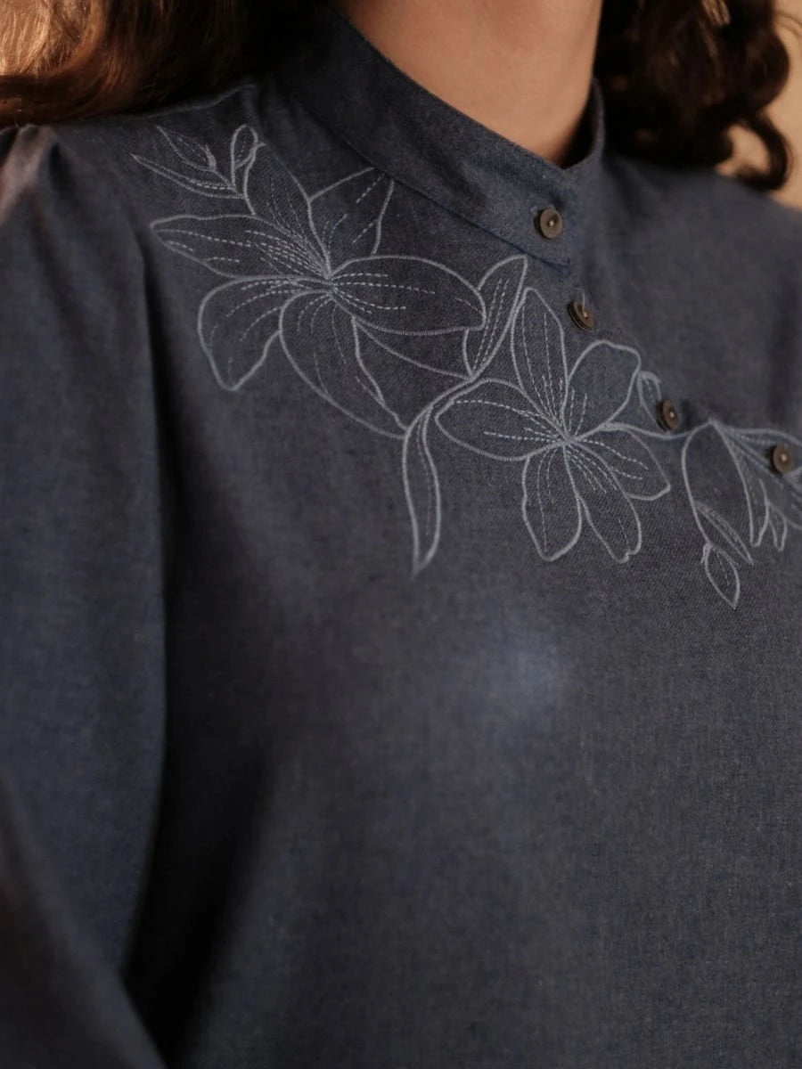 Şehrazat Tunik Mavi, pamuklu flanel kumaşın sıcak dokusunu mavi rengin modern ve zarif etkisiyle birleştiren şık bir tuniktir. Sonbahar ve kış sezonunda tercih edilebilecek bu ürün, rahat kesimi ve detayları sayesinde hem günlük hem de özel ortamlarda üstün konfor sunar. Zarif tasarımı ile stilinize modern bir dokunuş katar.