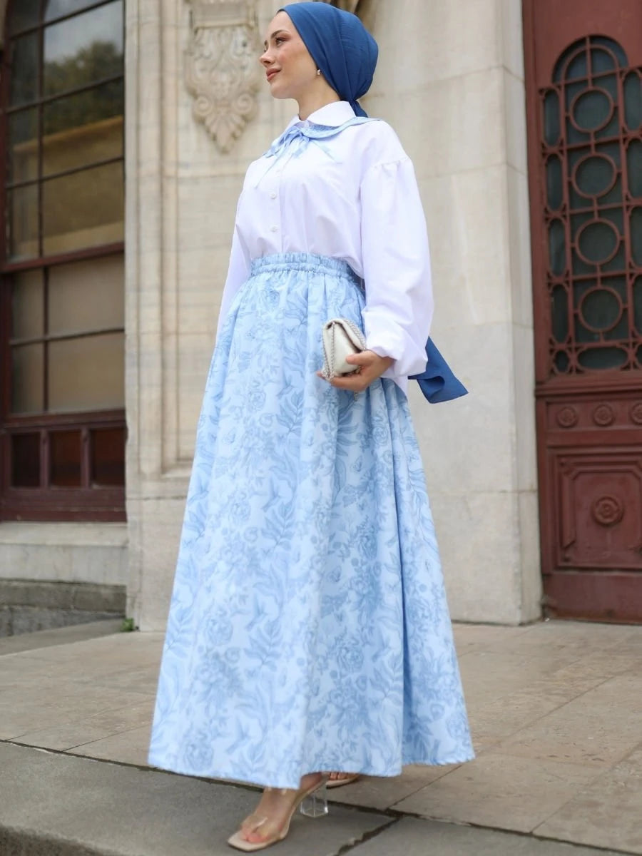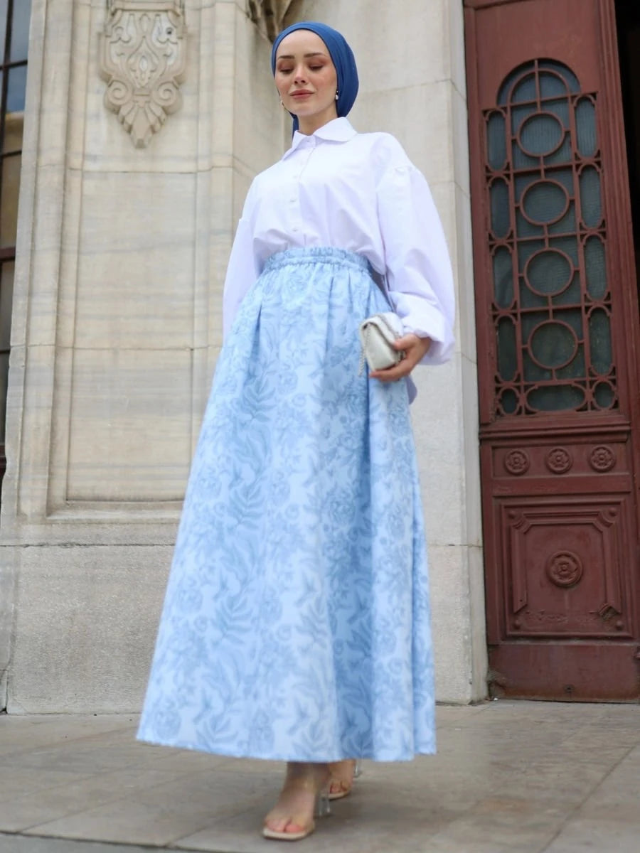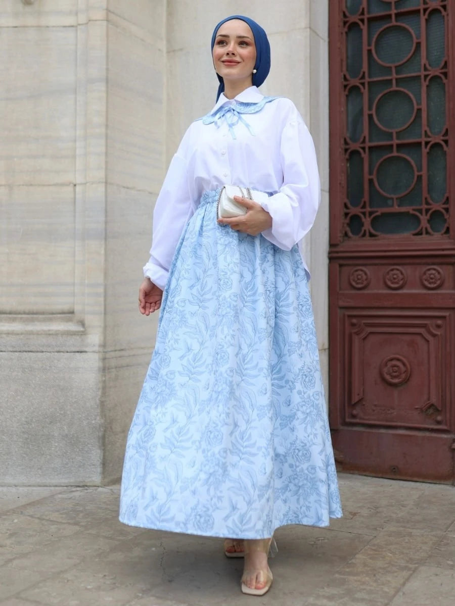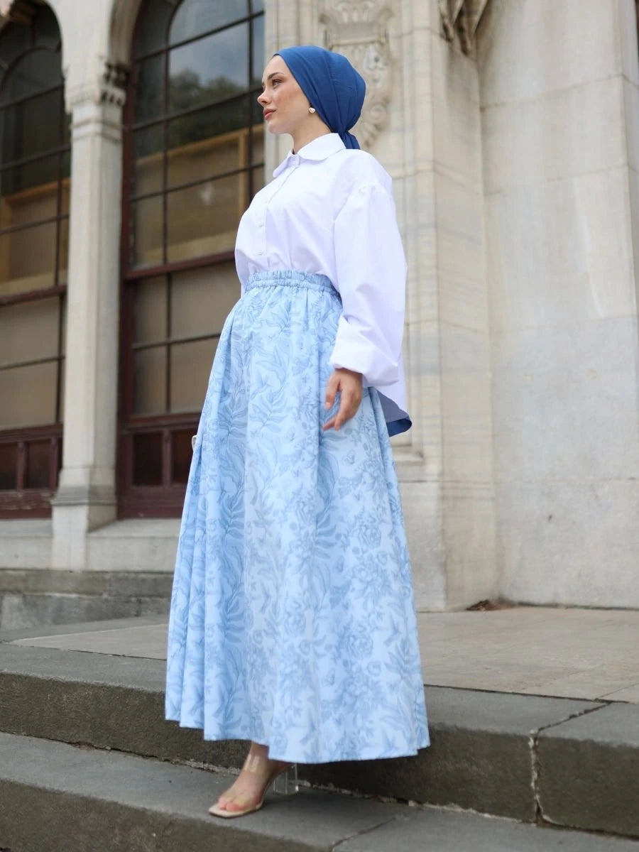 Tanem Etek Mavi, %100 pamuklu poplin kumaşın ferah ve nefes alabilir özelliklerini mavi rengin serin etkisiyle birleştirir. Aksesuar yaka hediyesi ile birlikte sunulan ürün, beli lastikli, ayarlanabilir kordon detayları ve yan cepler ile modern tasarımı destekler. Astarsız yapısı sayesinde iç göstermez ve tüm gün konfor sağlar.