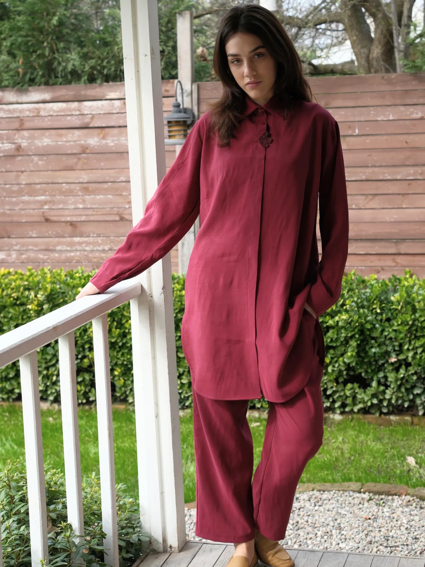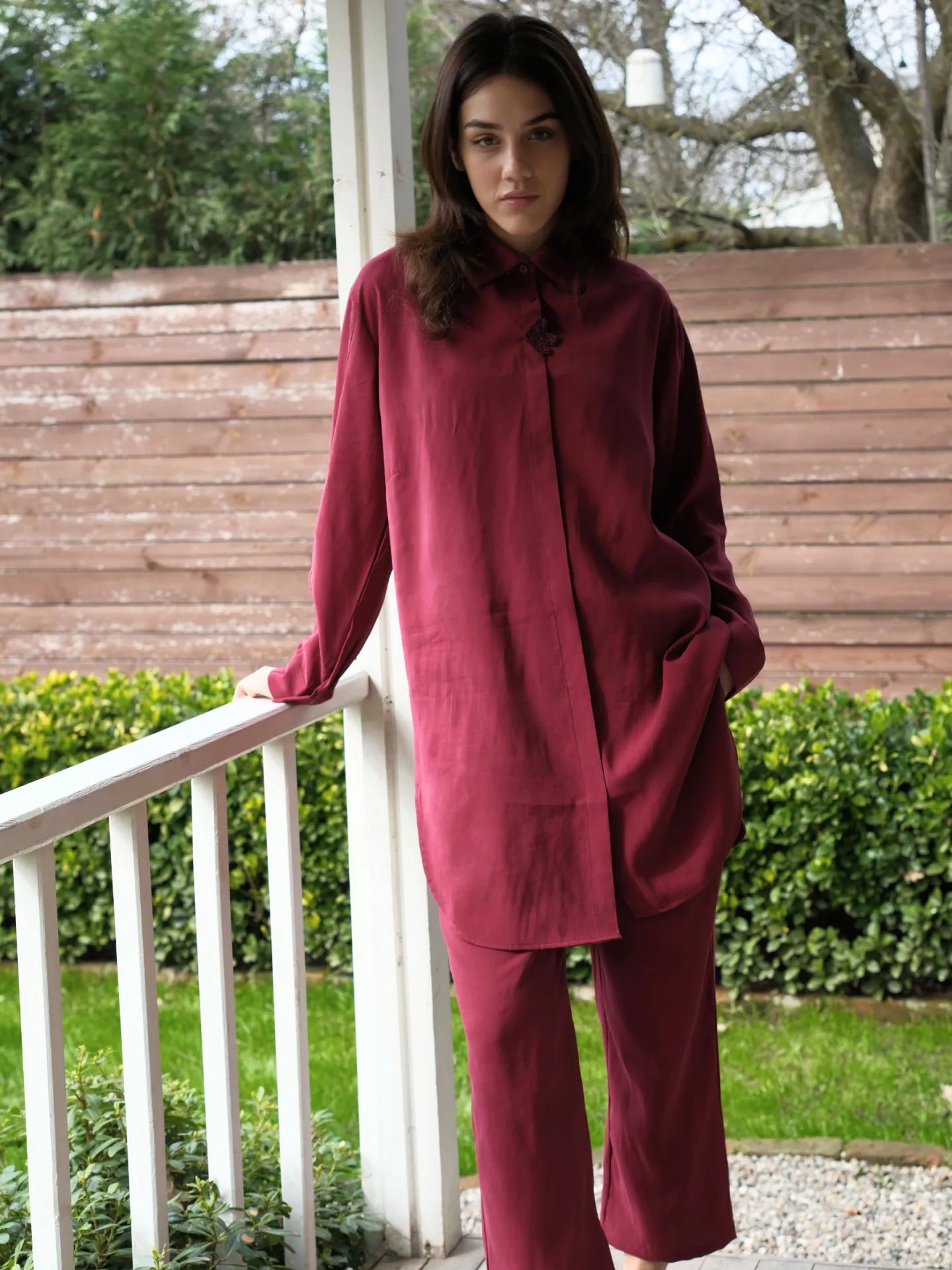 Tensel Kumaş Takım Mürdüm, zarif mürdüm renginin sofistike dokunuşunu sunan, modern çizgilere sahip şık bir takım ürünüdür. Pamuk Viskon Tensel kumaş, hareket özgürlüğü ve ferahlık sağlayarak yaz aylarında ideal bir konfor sunar. Bu ürün, stilinizi zarif detaylarla zenginleştirir ve her türlü kombin için mükemmel bir tercihtir.