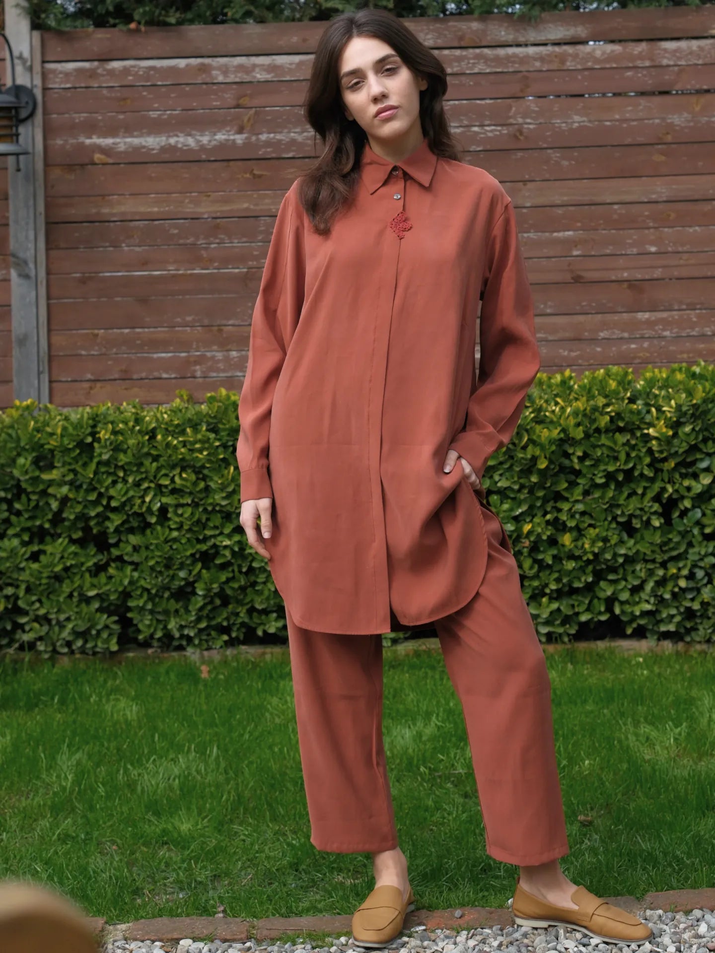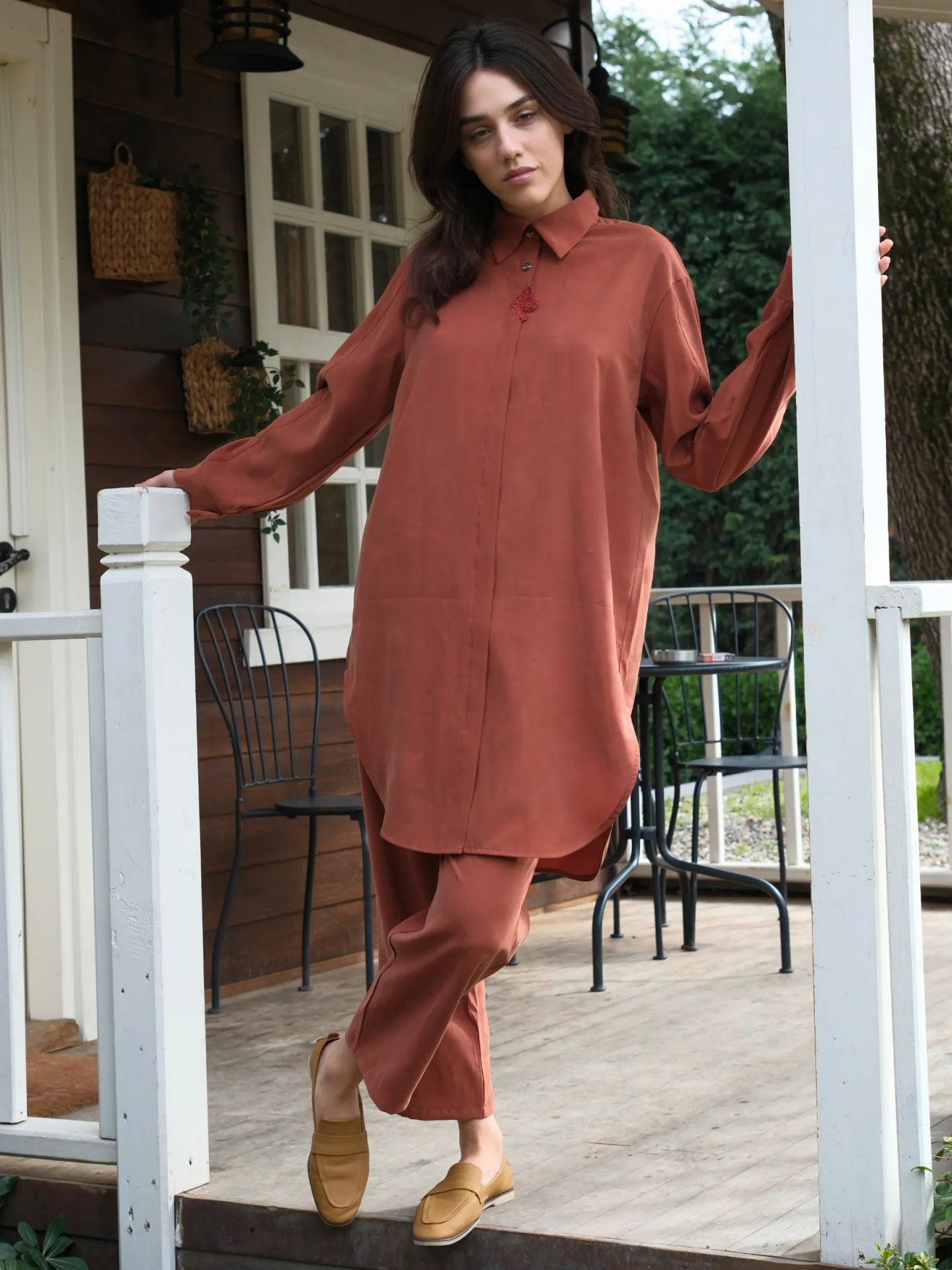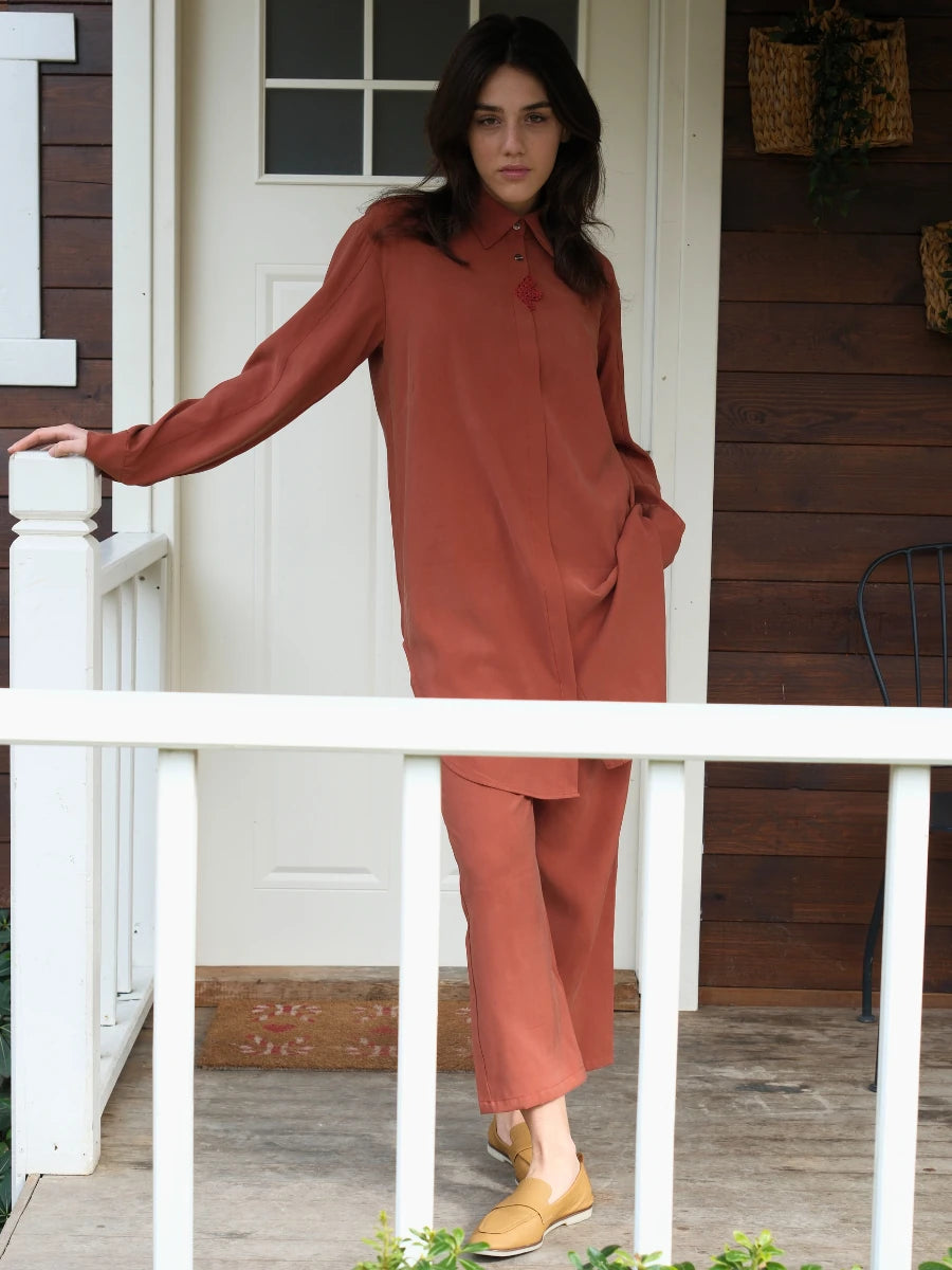 Tensel kumaşın hafif, nefes alabilen yapısı, sıcak günlerde ferahlık sağlar. Tarçın