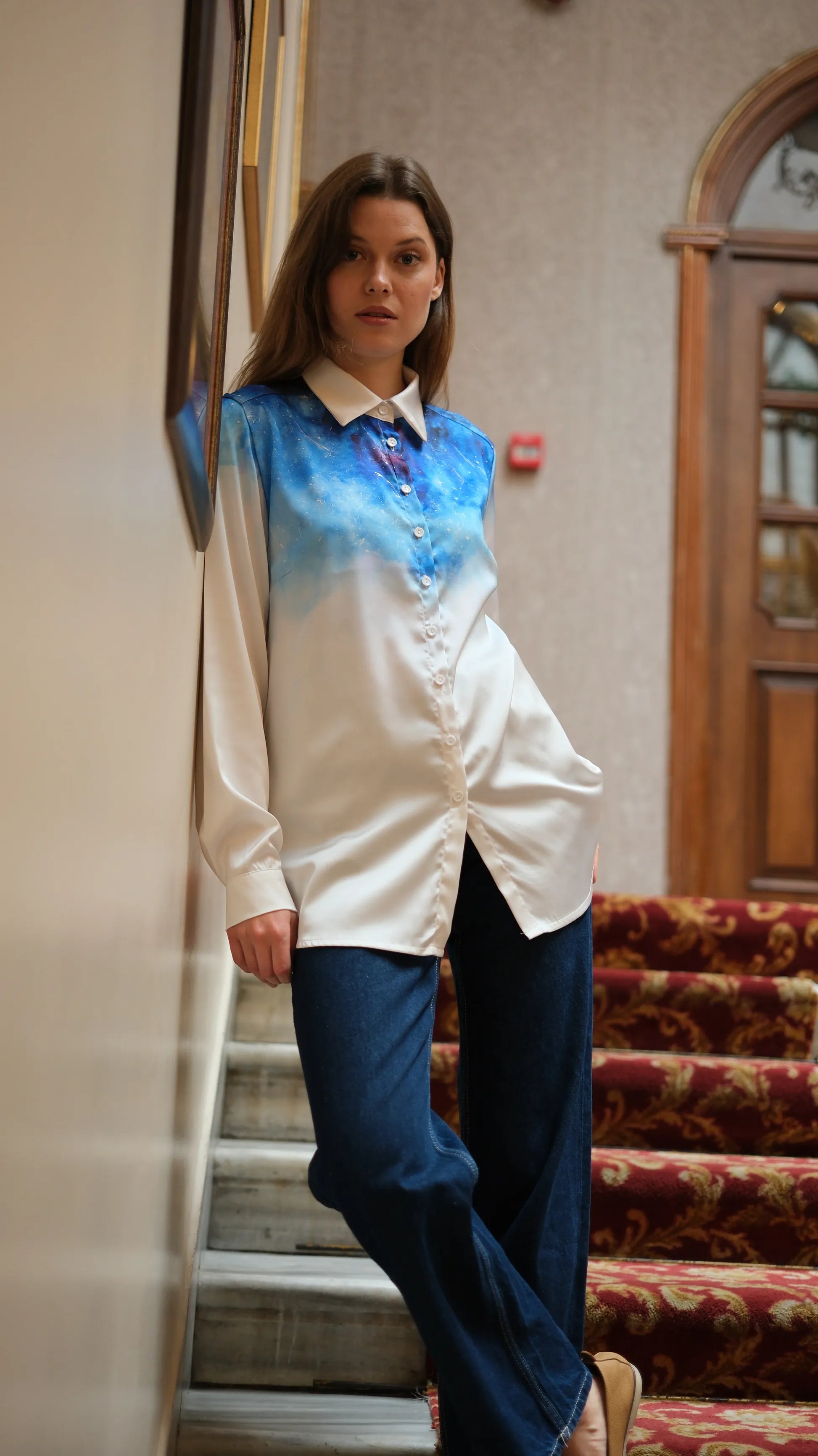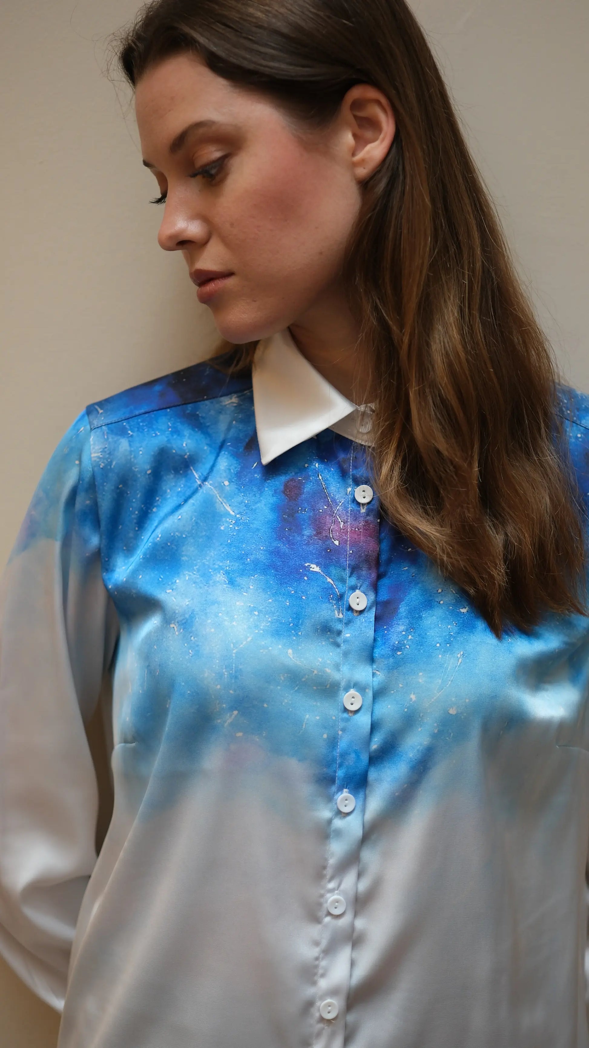 Mavi gökyüzü desenli tasarımı, hem göz alıcı hem de zarif bir görünüm sağlar. Bu özellik, Venüs Saten Gömlek’i her ortamda tercih edilebilir kılmaktadır.