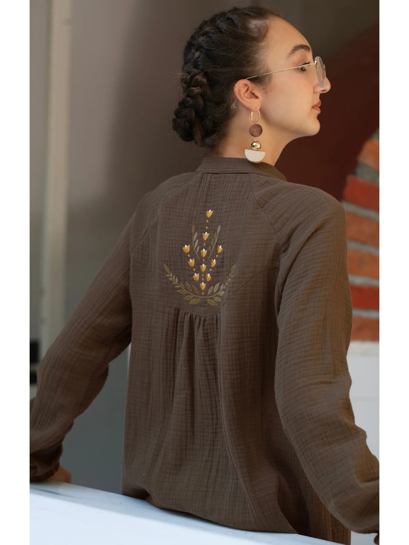 %100 pamuk müslin kumaştan üretilen bu kahverengi elbise, doğal dokusu ve zamansız tasarımı ile öne çıkar. Çift kat dokuma yapısı sayesinde hem hafif hem de tok bir duruşa sahiptir. Geniş kesimi ve sade detayları sayesinde günlük kombinlerden özel anlara kadar her ortamda konforlu ve şık bir kullanım sunar. Kahverengi tonunun doğallığı, kombinlerinize sıcak ve dengeli bir hava katar.
