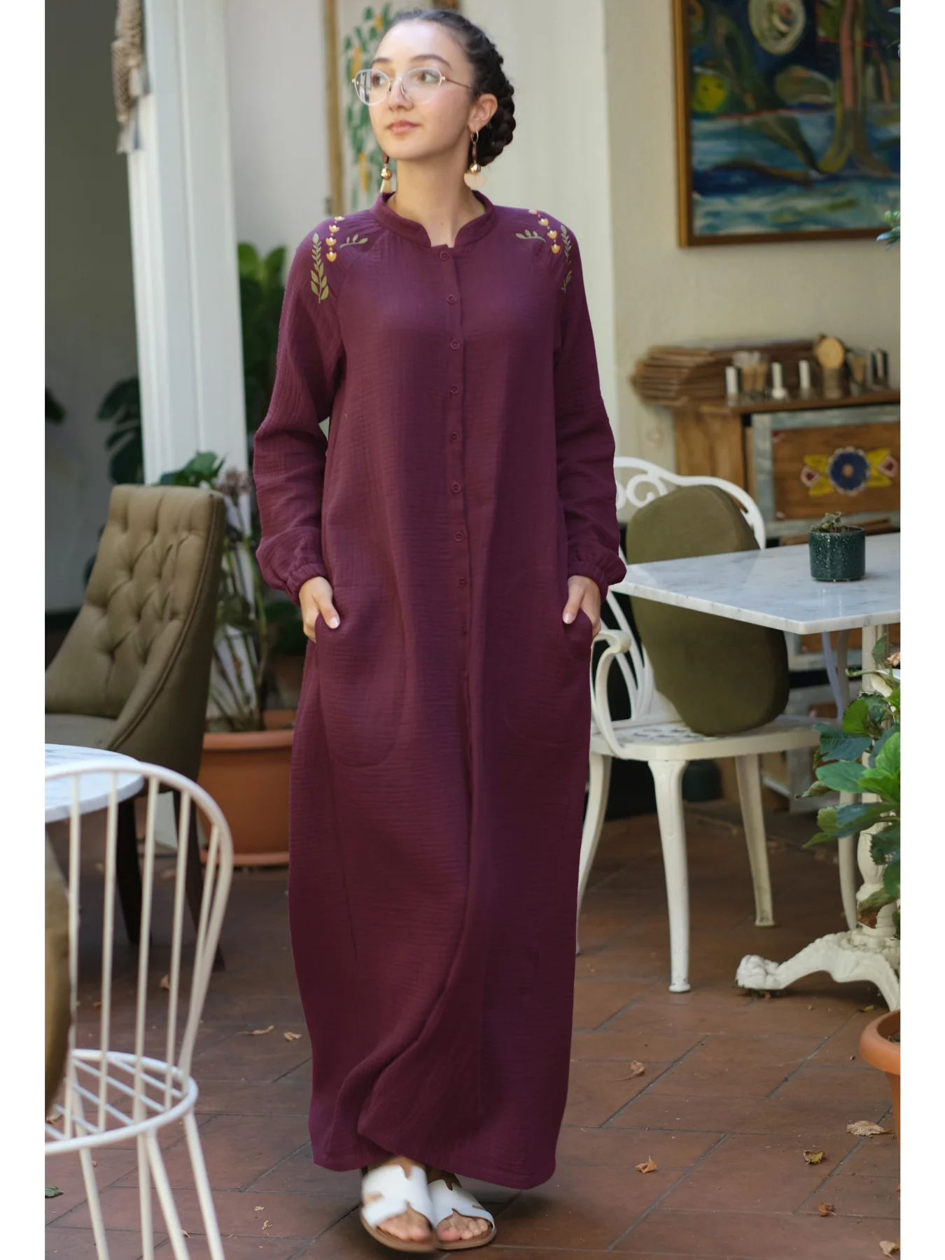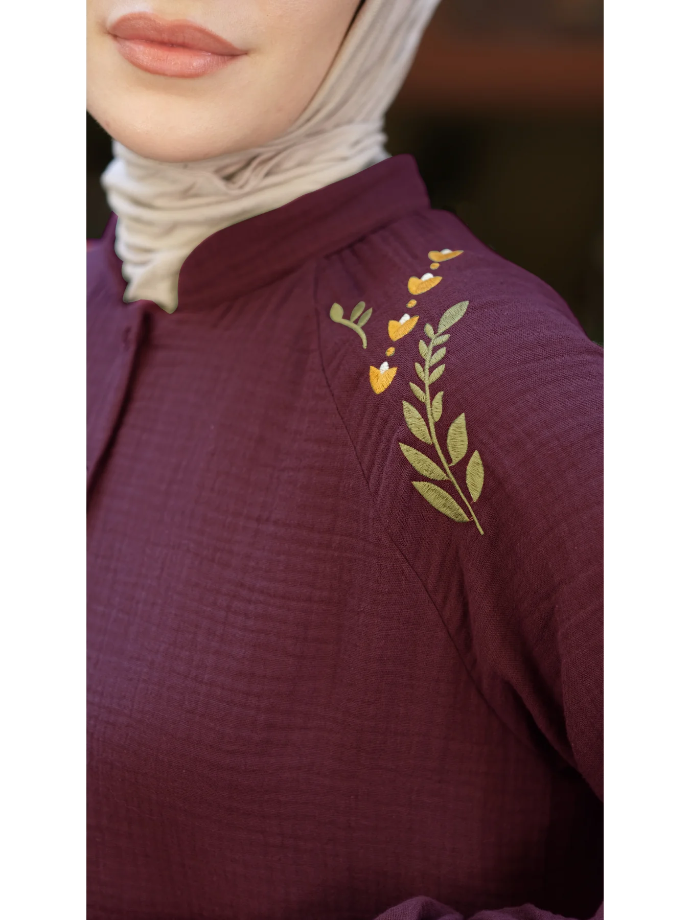 %100 pamuk müslin kumaştan üretilen bu vişne renkli elbise, doğal dokusu ve canlı tonu ile dikkat çeker. Çift kat dokuma yapısı sayesinde hem hafif hem de tok bir duruşa sahiptir. Geniş kesimi ve rahat kalıbı, sıcak havalarda ferahlık sunarken, sade tasarımı ile her ortama zarif bir uyum sağlar. Günlük kullanım, tatil veya özel anlar için şık ve konforlu bir alternatiftir.